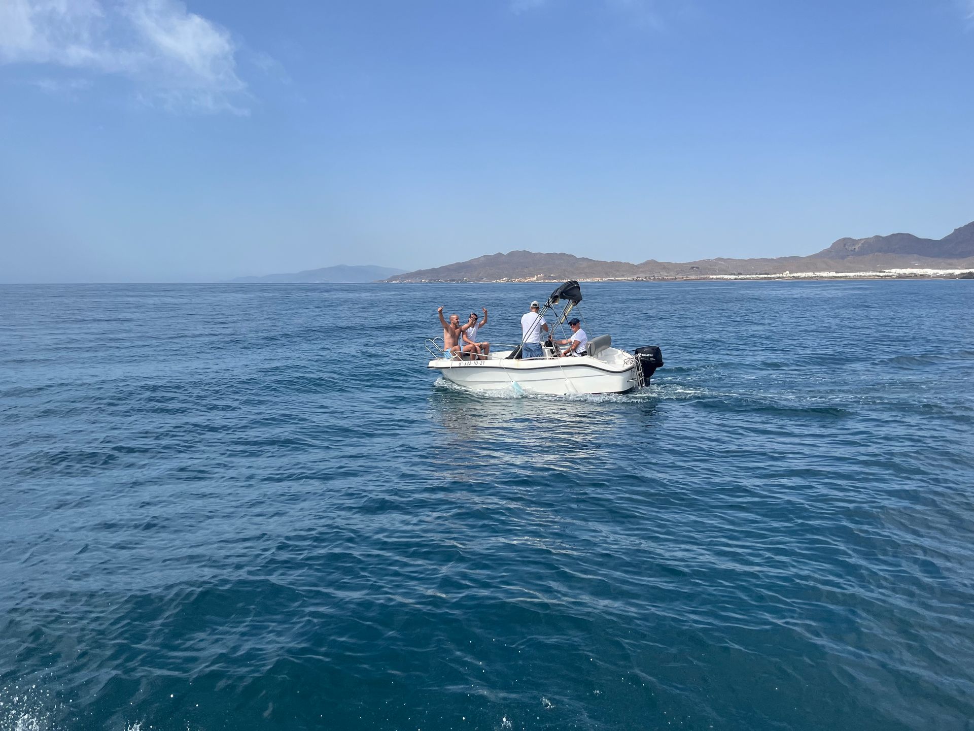 Estas preciosas embarcaciones son las más estables del mercado debido a su anchura, disponen de una cómoda escalera en popa para subir y radio mediante Bluetooth para hacer de tu estancia en Terreros unas vacaciones inolvidables.