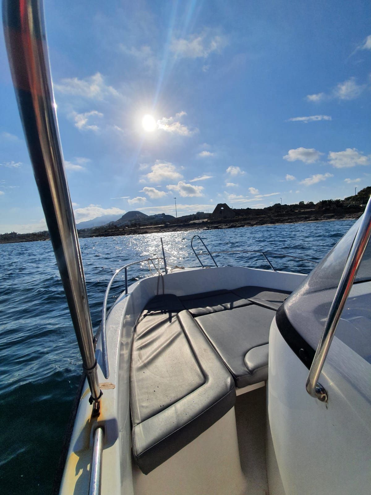 Equipamiento: Toldo, radio bluetooth, nevera, gran solarium a proa, escalera de baño grande (para bajar y subir cómodamente al barco)